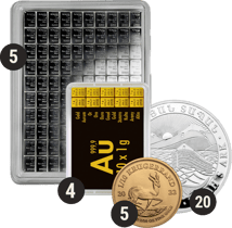 Dies ist das Einsteiger-Paket für alle mit kleinerem Budget oder diejenigen, die zum ersten Mal in Edelmetalle investieren möchten. Die kleinen Stückelungen sorgen für eine optimale Tauschbarkeit und Flexibilität. Gerne können Sie auch mehrere dieser Pakete bestellen, um auf Ihren gewünschten Investitionsbetrag zu kommen. Dieses Paket enthält: